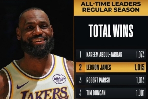 據(jù)NBA官方統(tǒng)計(jì),這是詹姆斯生涯第1015場常規(guī)賽勝利,超越“酋長”帕里什,升至NBA歷史第二位,僅次于“天勾”賈巴爾的1074場。