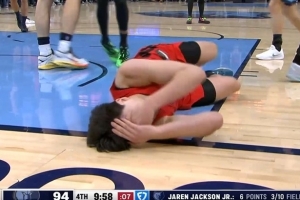 2009-10賽季常規(guī)賽,卡梅羅-安東尼在進(jìn)攻中突然倒地不起,裁判卻未中斷比賽,導(dǎo)致出現(xiàn)“一躺九打”的奇觀。直到過(guò)了三十秒,安東尼的隊(duì)友被投籃犯規(guī)比賽被迫中斷,才有人能上前去關(guān)注安東尼的情況。
