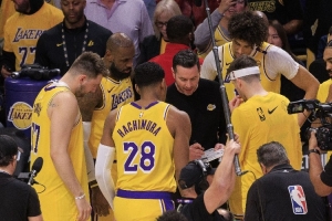 楊毅:湖人這個(gè)隊(duì),東契奇、里夫斯、老詹,你三位一位都防不了,是吧?球隊(duì)三個(gè)頭牌一位都防不了,那你怎么防?是不是那么再加上這個(gè)首發(fā)里邊還有八村塁來說,就是他有他的特長,他能頂一下,但是你真正讓他換到外邊防一二號(hào)位,他也防不了,這四個(gè)人都防不了突破。