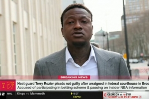 體育資訊12月9日訊 據ESPN法律分析師瑞安·史密斯報道,熱火后衛(wèi)特里·羅齊爾今日在布魯克林聯邦法院出庭,對非法體育博彩起訴書中的兩項聯邦指控表示不認罪,他以300萬美元的保釋金獲釋。