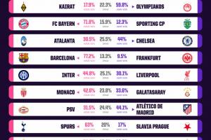 體育資訊12月09日訊 歐冠聯(lián)賽階段第6輪將在今夜明晨打響,opta預測國米迎戰(zhàn)利物浦有44.8%的獲勝概率。此外,主場作戰(zhàn)的拜仁和巴薩的獲勝概率超過70%