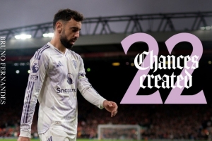 B費(fèi)本賽季為曼聯(lián)出戰(zhàn)8場英超比賽,打進(jìn)2球,助攻1次。曼聯(lián)官方社媒曬出數(shù)據(jù)海報(bào),確認(rèn)B費(fèi)本賽季聯(lián)賽創(chuàng)造22次機(jī)會,英超球員中最多。