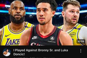 他的標(biāo)題很有趣:“我跟老布朗尼(指勒布朗·詹姆斯)和盧卡·東契奇打了比賽!”