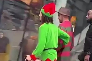 沃克身著經(jīng)典電影角色弗萊迪·克魯格服裝,被拍到在街頭腳步不穩(wěn),需要由裝扮成“精靈”的22歲隊(duì)友漢尼拔以及一名安保人員共同攙扶,才能返回下榻酒店。