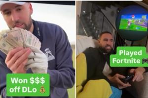 克萊度過了男人能想到的最完美的一天:帶女友打球(教馬冬梅打高爾夫)、薅隊友羊毛(賭球贏了拉塞爾一點小錢)、打電子游戲(躺沙發(fā)上玩堡壘之夜)。
