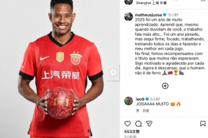 今日海港外援茹薩在社媒發(fā)文,對賽季表現(xiàn)進(jìn)行總結(jié),他寫道: