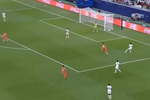 蘇丹中場(chǎng)阿馬爾·泰弗在己方底線附近過(guò)人,隨后詭異地“吊射”自家大門(mén),門(mén)將勉強(qiáng)將球一撲,球落到對(duì)手腳下,然而巴林前鋒阿里·馬丹面對(duì)半個(gè)空門(mén)卻將球打偏婉拒大禮,場(chǎng)上一時(shí)不分?jǐn)澄遥?/p>
