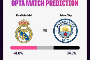 歐冠皇城PK!Opta預(yù)測(cè):皇馬勝率41.8%,曼城勝率34.2%