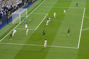 VAR介入,主裁觀看回放后判罰點球,并對呂迪格出示黃牌!