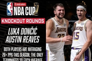 歷史上單賽季場(chǎng)均同時(shí)達(dá)到28+分的隊(duì)友組合僅有:2000-01賽季的奧尼爾(28.7分)與科比(28.5分),以及1961-62賽季的埃爾金·貝勒(38.3分)與杰里·韋斯特(30.8分)。