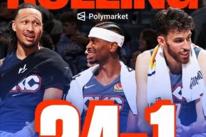 目前,雷霆以24勝1負(fù)高居聯(lián)盟榜首。