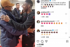 埃托奧在社媒配文寫道:“很高興再次見到你,金球獎(jiǎng)先生!???????????????? 是的,埃托奧爸爸來了????????????????”