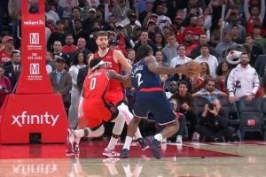 GIF-萊昂納德對抗頂飛霍勒迪被吹進攻犯規(guī)!