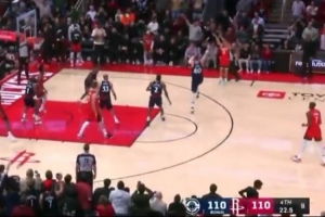 本場(chǎng)比賽,火箭球員謝潑德替補(bǔ)出戰(zhàn)26分鐘,9中4,三分5中2拿到10分4籃板2助攻1蓋帽,正負(fù)值+6。最后時(shí)刻比分110平時(shí),謝潑德右側(cè)大空位三分不中。