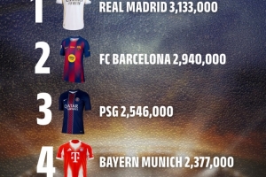 ?? 2025年全球球衣銷(xiāo)量排行(單位:件)