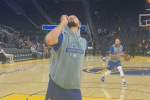 本場復(fù)出的庫里進(jìn)行了賽前熱身,熱身時,他上腳了阿迪達(dá)斯球鞋,愛德華茲一代。