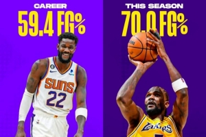 他有望成為隊(duì)史首位單賽季場均得分超過15分且命中率超過70%的球員,展現(xiàn)出在內(nèi)線的絕對統(tǒng)治力、高效性和掌控力。