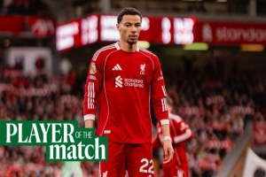 據(jù)賽后利物浦官方消息,本場比賽打進兩球的前鋒?;倏水斶x此役隊內最佳球員。