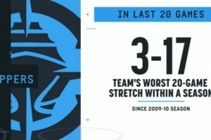 備注:2009-10賽季快船最終取得29勝53負戰(zhàn)績