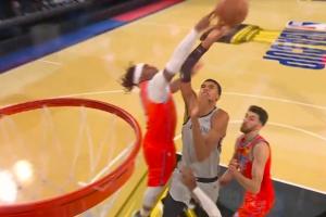 文班亞馬過人沖擊籃筐,多特殺出來蓋掉!