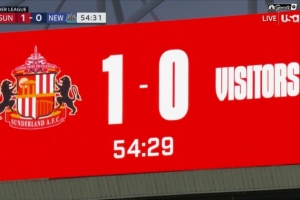 體育資訊12月15日訊 桑德蘭在本輪英超1-0擊敗紐卡,而現(xiàn)場(chǎng)畫(huà)面可以看到,桑德蘭沒(méi)有將死敵紐卡的隊(duì)名和隊(duì)徽放到記分牌上。
