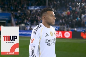 本場比賽姆巴佩為球隊(duì)首開記錄,賽后他也當(dāng)選西甲官方評(píng)選出的本場最佳球員。