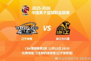 12月15日晚,遼寧男籃將在遼寧體育館迎來(lái)2025-2026賽季CBA首個(gè)主場(chǎng)比賽,對(duì)手是上賽季冠軍浙江方興渡男籃。