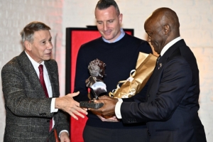 體育資訊12月15日訊 拜仁主帥文森特·孔帕尼獲得了2025年雷蒙德·戈塔爾斯獎,該獎項(xiàng)旨在表彰比利時(shí)年度最佳教練??着聊岬母赣H皮埃爾代表兒子來到現(xiàn)場領(lǐng)獎。