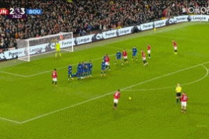 體育資訊12月16日訊 英超第16輪,曼聯(lián)主場(chǎng)迎戰(zhàn)伯恩茅斯,比賽第77分鐘,B費(fèi)任意球直接破門,曼聯(lián)3-3扳平比分。