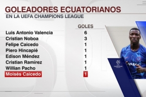 此役凱塞多為切爾西首發(fā)出戰(zhàn),并斬獲歐冠處子球,他成為第8位在歐冠比賽中破門的厄瓜多爾球員。