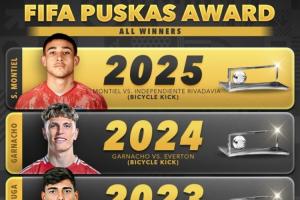 體育資訊12月16日訊 2025年普斯卡什獎公布,25歲的阿根廷球員圣地亞哥·蒙鐵爾憑借一記禁區(qū)外的精彩倒勾獲獎。算上這粒進球,普斯卡什已經(jīng)連續(xù)4年由倒勾進球當選。