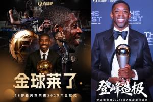 體育資訊12月17日訊 登貝萊榮膺2025FIFA年度最佳球員,包攬2025金球獎和2025FIFA最佳兩項(xiàng)大獎。