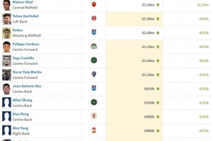 中超球員身價(jià)漲幅排名:維塔爾上漲150萬(wàn)歐居首,古爾芬克爾第二