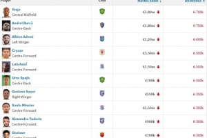 體育資訊12月17日訊 德轉(zhuǎn)更新中超球員身價(jià),古加、布爾克成為中超身價(jià)下降最多的球員,兩人均下降70萬(wàn)歐。