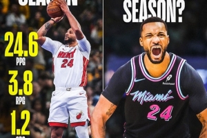 鮑威爾本賽季場均24.6分3.8籃板1.2搶斷,三分命中率43.6%;目前熱火14勝12負,排名東部第八。