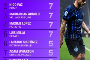 6、勞塔羅(國米):5次
