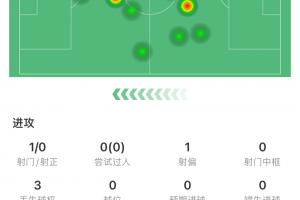 阿蘇埃53分鐘1次射門0射正,11次觸球5次傳球,3次丟失球權(quán)。1次解圍、1次成功搶斷,1次地面對抗成功。
