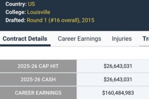 美媒Hoop Herald曬出羅齊爾生涯薪資,算上本賽季的2664萬,羅齊爾生涯的總薪資超過了1.6億美元。