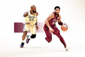 騎士官推曬出由湖人球員詹姆斯和騎士球員米切爾組成的海報(bào),并附上了本場比賽的購票鏈接。
