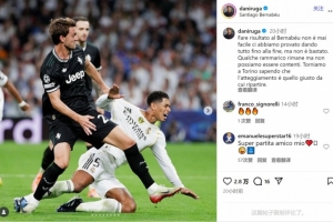 魯加尼此役為尤文踢滿全場(chǎng),他在社交媒體上曬出比賽照片,配文:“在伯納烏球場(chǎng)取得好結(jié)果從來(lái)都不容易,我們拼盡全力戰(zhàn)斗到最后一刻,但還是不夠?!?/p>