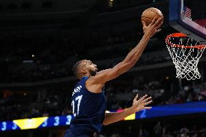 上半場(chǎng),森林狼內(nèi)線戈貝爾表現(xiàn)還可以,在17分鐘的時(shí)間里,投籃9中4,罰球5中2,拿到10分5籃板1蓋帽的數(shù)據(jù)。