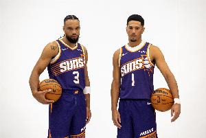他出場26分34秒,17投7中(三分10中5),罰球2中2,拿到21分3籃板2助攻2搶斷,布克投籃10中5,三分球4中1,罰球7中7,拿到18分3籃板7助攻。